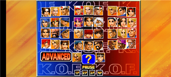 1.全新的角色選擇:游戲中共有38名角色,包括經(jīng)典人物如八神庵、不知火舞、大門五郎等。