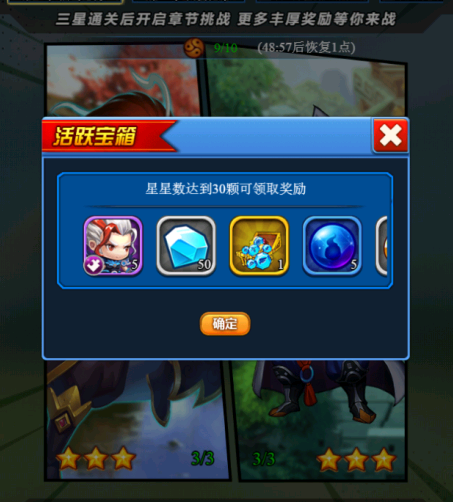 當(dāng)玩家兩個(gè)關(guān)卡都過關(guān)后就會(huì)出現(xiàn)一個(gè)章節(jié)BOSS,打敗章節(jié)BOSS獲得完美通關(guān)也會(huì)得到相關(guān)的一些獎(jiǎng)勵(lì)。還有就是根據(jù)挑戰(zhàn)的每關(guān)卡獲得的星級(jí)累計(jì),當(dāng)條件達(dá)到時(shí)就會(huì)激活活躍寶箱領(lǐng)取寶箱內(nèi)的豪華獎(jiǎng)勵(lì),所以要獲得更多的活躍寶箱就要快速提升等級(jí)并且努力提升自身戰(zhàn)力,爭(zhēng)取每關(guān)都是三星通關(guān)喲!