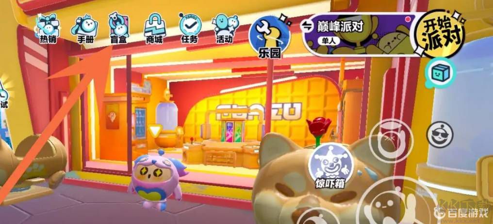 1、進(jìn)入蛋仔派對(duì)游戲中,點(diǎn)擊【盲盒】圖標(biāo),如下圖所示。