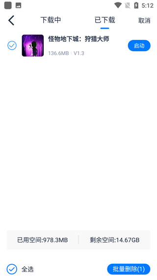 2、進(jìn)入下載頁面,長按選中需要刪除的游戲,點擊“刪除”選項即可。