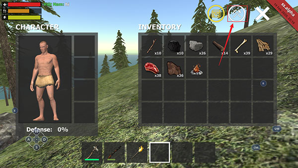 1、在野外生存模擬器游戲中點(diǎn)擊左上角的背包圖標(biāo)。