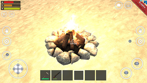 9、移動(dòng)角色焦點(diǎn),當(dāng)營(yíng)火上出現(xiàn)OPEN圖標(biāo)后可通過(guò)點(diǎn)擊“眼睛”圖標(biāo)使用營(yíng)火。