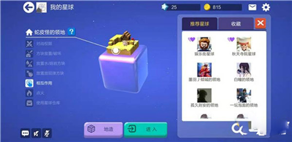 4、還可以參考大觸們的建設思路,在星球入口頁面找到右下角的“推薦家園”,可以看到許多優(yōu)秀的星球作品。如果你設計的星球足夠亮眼,沒準也會獲得官方的推薦哦