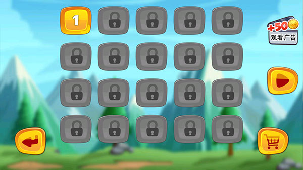 3、然后點(diǎn)擊中心的按鈕,選擇游戲關(guān)卡,第一關(guān)通關(guān)后會(huì)自動(dòng)解鎖后面的關(guān)卡。