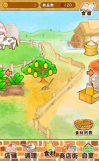 1、去農(nóng)場收獲食材,然后照著食譜的提示組合自己試一下制作更多不同種類的甜品吧。