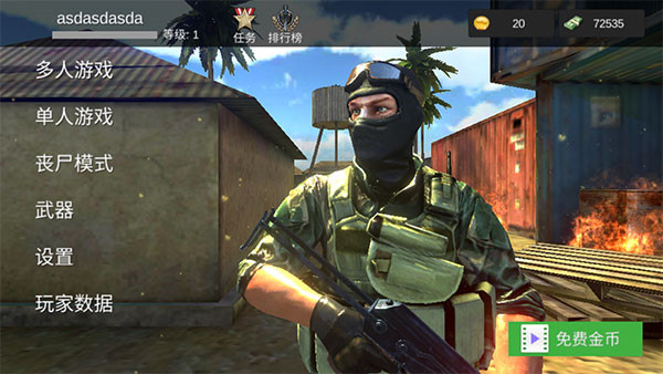 多人游戲:多人模式里隨機(jī)加入6大陣營(三角洲部隊(duì),雇傭軍,海豹突擊隊(duì),陸軍,特警,恐怖分子),40多種現(xiàn)代武器,和玩家一起體驗(yàn)酣暢淋漓的戰(zhàn)斗。