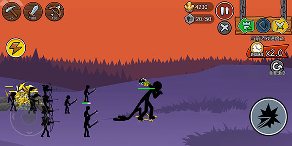 1、控制你的軍隊(duì)組成編隊(duì)或指揮單個(gè)單位,你擁有每個(gè)火柴人的控制權(quán)。