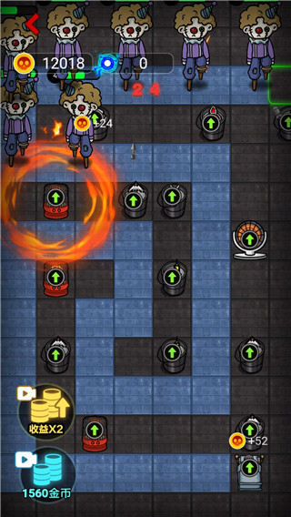 2、為了抵抗小丑和惡靈,你只能升級(jí)三種塔防,每種塔防都有不同的效果。