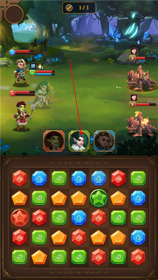 1、游戲開(kāi)始,選擇相同的三個(gè)方塊即可消除,消除后英雄就會(huì)開(kāi)展攻擊。記住,只有消除對(duì)應(yīng)顏色的方塊英雄才會(huì)攻擊,否則是無(wú)效的。