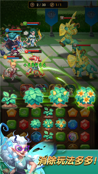 休閑三消與傳統(tǒng)回合制的巧妙融合,既有消除闖關(guān)的淋漓爽感,也有經(jīng)典戰(zhàn)斗的策略挑戰(zhàn)!面對(duì)強(qiáng)大的對(duì)手,你可以盡情發(fā)揮,施展高超的消除技巧擊潰敵人;也可以深思熟慮,通過(guò)排兵布陣、巧用技能來(lái)取得勝利。