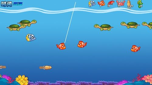5、釣魚方法很簡單,我們只要點(diǎn)擊屏幕,上方的魚線就會(huì)向下延長,當(dāng)魚線頂端剛好碰到魚,就能將它吊起來了。這個(gè)大家多嘗試幾次就可以輕松釣到魚。