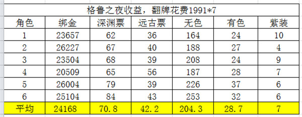 【格魯之夜】本地圖測(cè)試有一個(gè)月卡角色,多30點(diǎn)精力,以及25次翻牌,統(tǒng)計(jì)平均值時(shí)已進(jìn)行忽略。