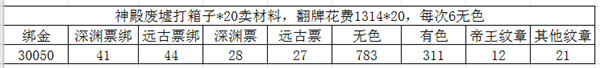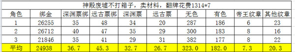 【神殿廢墟(手動(dòng))】打箱子可以獲得大量的綁金與晶石。注:本次統(tǒng)計(jì)不包括活動(dòng)產(chǎn)出的14400綁金。