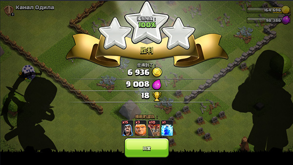 (2)玩家搜索到自己喜歡的對手后,需要在限定的3分鐘內(nèi),將對手村莊內(nèi)的主要建筑摧毀掉,當(dāng)摧毀度達(dá)到50%時,即可獲得勝利。勝利的玩家從對手的村莊里,掠奪到一些金幣、圣水、暗黑重油等獎勵。同時,玩家可獲得相應(yīng)的獎杯,獎杯越高勝利獲得的獎勵越多。如果玩家未能在規(guī)定時間內(nèi),達(dá)到50%摧毀度,則進(jìn)攻失敗,同時會扣除一些獎杯。玩家在聯(lián)機(jī)模式下,將會耗損一些兵種或藥水。
