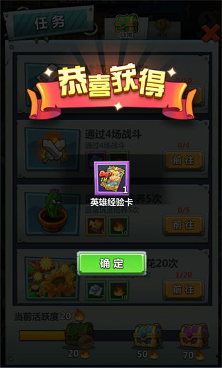 在主界面-任務(wù)處,完成每日任務(wù)積攢活力就能開啟活力寶箱了,第一個(gè)寶箱就能開出英雄經(jīng)驗(yàn)卡哦~