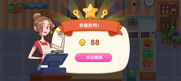 2、解鎖更多倉庫,購買更多優(yōu)質食品,創(chuàng)造更多美味食品可以更快的過關。