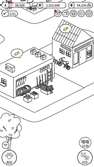 4、建筑升級:建筑可生成貓咪喜歡的小魚干,可用小魚干來進行升級。