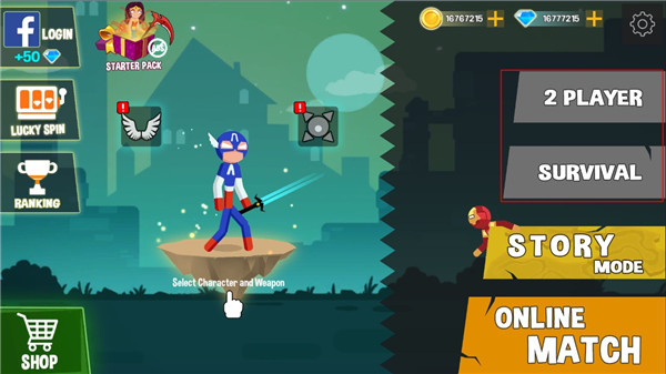 火柴人格斗是以火柴人為題材的一款動作小游戲,游戲里面玩家可以操控火柴人進行戰(zhàn)斗,享受激烈、刺激、快節(jié)奏的游戲體驗?;鸩袢烁穸酚螒蚶锩姘舜罅恳越?jīng)典影視角色為原型的火柴人角色,每一個角色都擁有其獨特的能力。我們可以選擇自己喜歡的火柴人角色,再搭配上各種各樣稀奇古怪的武器,玩起來非常的歡樂。尤其是在跟朋友進行對戰(zhàn)的時候,可以讓歡聲笑語停不下來,有興趣的朋友趕緊來KK下載站下載體驗吧!