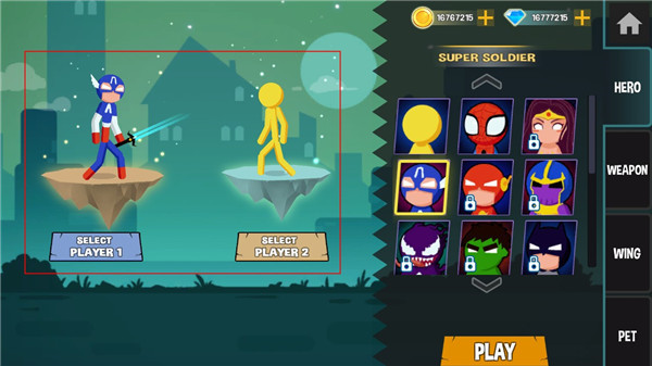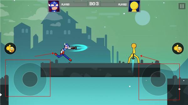 5、點擊:play即可開始游戲,左右各有一個鍵自己可以用兩只手控制兩個角色;
