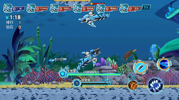 2、你的鯊魚可以變形成為超級動力的機械鯊魚,在水中尋找各種獵物的身影;