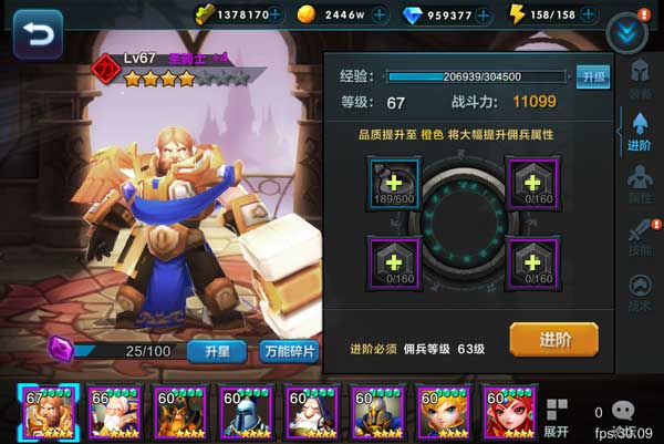 傭兵進(jìn)階需要對應(yīng)種族的建筑、傭兵等級、強(qiáng)化精粹、晶石(精粹和晶石可通過副本獲得)