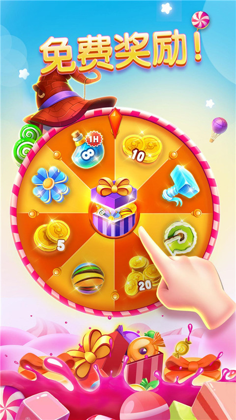 匹配7顆糖果,創(chuàng)造出非凡的著色糖果。