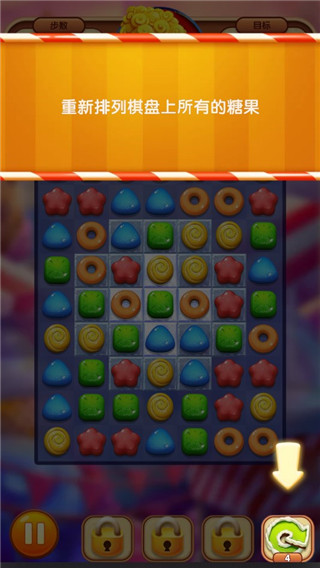 4、要是一時(shí)間沒有思路,可以點(diǎn)擊右下角重置糖果的排列。