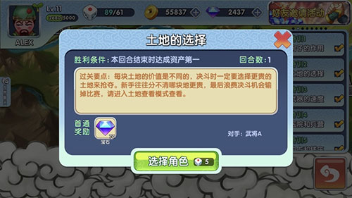 過關(guān)要點(diǎn):每塊土地的價(jià)值是不同的,決斗時(shí)一定要選擇更貴的土地來搶奪。新手往往分不清哪塊地更貴,最后浪費(fèi)決斗機(jī)會(huì)輸?shù)舯荣?,?qǐng)進(jìn)入土地查看模式查看