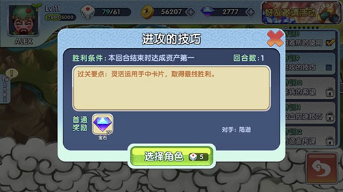 激斗模式:決斗是《富豪創(chuàng)三國》的特色玩法,激斗模式隨機(jī)發(fā)滿手牌、平均分配土地,適合喜歡激烈戰(zhàn)斗的玩家。