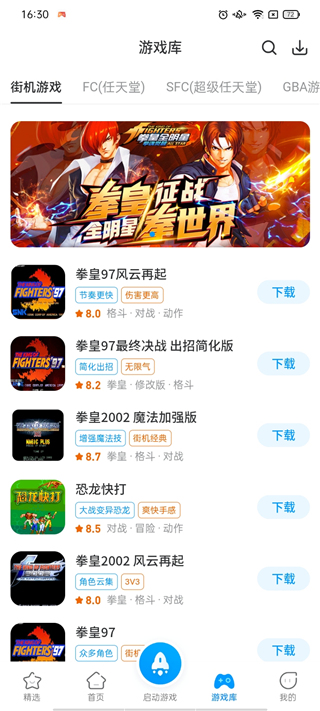 1、下載安裝好熱血街機(jī)最新版,打開進(jìn)入軟件選擇一款你喜歡的游戲;