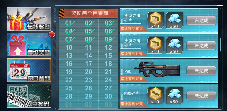 每日簽到:玩家通過每日登陸簽到獲得當(dāng)日獎(jiǎng)勵(lì);