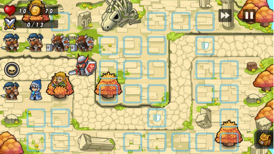 2、初始陣型:中級(jí)的減速法師比初級(jí)強(qiáng)不少,優(yōu)先升·好,一個(gè)衛(wèi)士是必要的,前期放3個(gè)小偷可以讓經(jīng)濟(jì)更快,然后隨意找兩棵樹(shù)蹲好弓箭手就行了