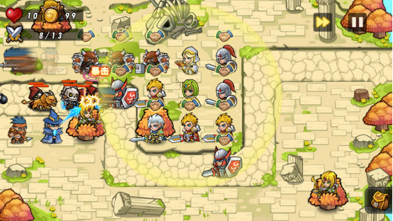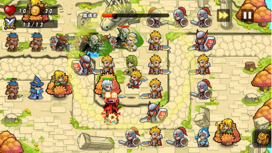 4、最終陣型:優(yōu)先把護(hù)衛(wèi)放滿,然后升級(jí)樹(shù)上的神射手,再然后優(yōu)先把護(hù)衛(wèi)旁邊的大劍士升出來(lái)(護(hù)衛(wèi)旁邊boss停留時(shí)間長(zhǎng),輸出環(huán)境好),富余的錢如圖把所有劍士連成一片,團(tuán)結(jié)起來(lái)!