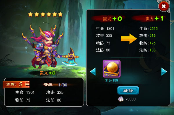 主角達到30級后還能對天術進行升級,達成天術后獲得更高的屬性提升。