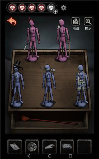 拼圖。此處建議從左往右拼,謹(jǐn)慎操作但也別磨蹭,否則容易被定為多次無效操作或待太久而損失勇氣。鑰匙開娛樂室。結(jié)合話給木偶搭配。