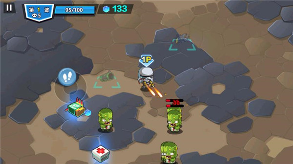 2、超爽射爆僵尸:可以手動(dòng)或自動(dòng)射擊僵尸。