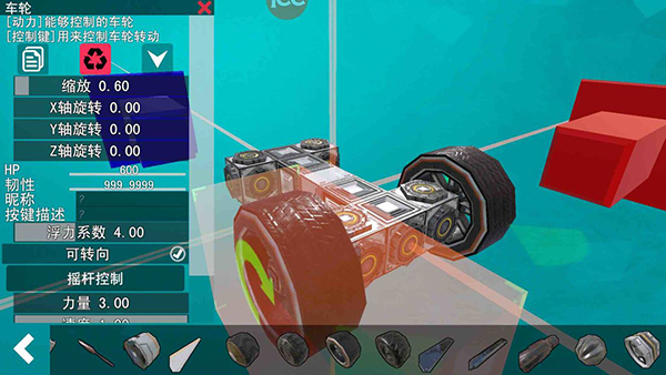 1、基于3D引擎打造,玩家可以在游戲中自由建造自己的飛船,坦克等