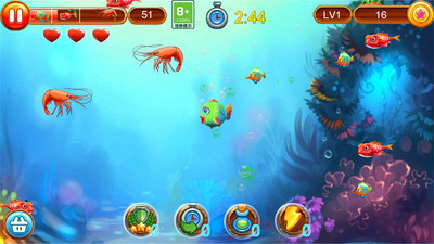 大魚吃小魚游戲畫面精致唯美,游戲還準備了豐富的游戲道具。與游戲關卡,玩家在這里可以自由選擇游戲模式,帶你體驗最刺激的海洋大冒險!