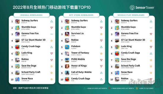ensor Tower官方于今日公布了2022年8月全球熱門移動(dòng)游戲下載量TOP10榜單,其中《地鐵跑酷》以3350萬(wàn)次下載,位列8月全球移動(dòng)游戲下載榜榜首。