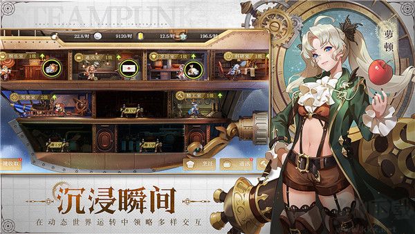 1、獨特的蒸汽朋克風格:科技和幻想相互交織出的架空工業(yè)革命時代背景,齒輪與軸承碰撞合奏出的金屬狂想曲,造就特別的美術與元素風格特色。