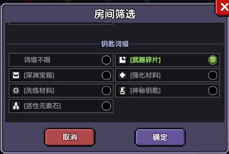 鑰匙房:在擊敗鑰匙房里的boss后有概率掉完整武器