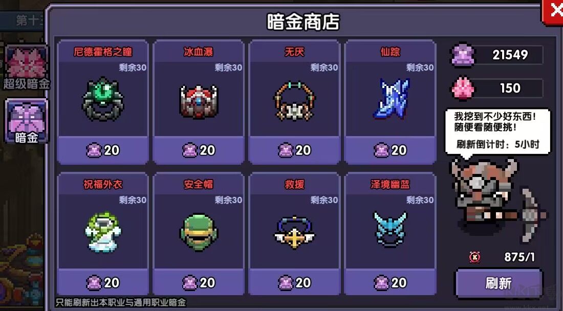 裝備可以在暗金商店購買前期選擇30級及以下裝備