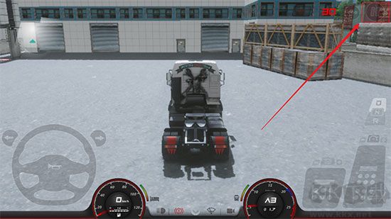 2、點擊右上角菜單,點擊左側(cè)鑰匙圖標(biāo)啟動卡車,即可開始按踏板操作,坐標(biāo)為方向盤,右側(cè)為剎車和油門,油門上方為前進和倒擋;