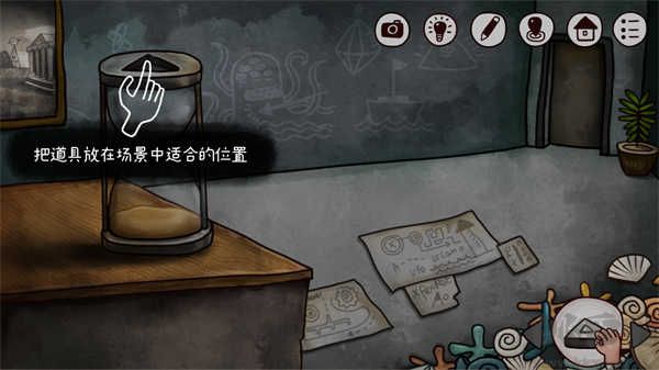 6、玩家還可以點(diǎn)擊筆按鈕來(lái)繪圖面板中記錄下你的解謎靈感;