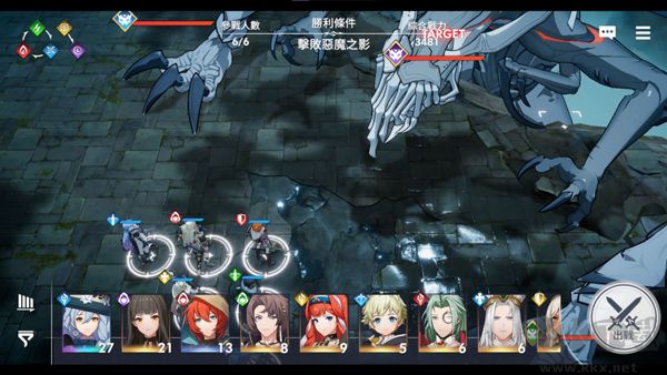 5、進入戰(zhàn)斗后,游戲采用了策略放置戰(zhàn)棋玩法,玩家需點擊敵人前方格子,然后派遣角色攻擊;