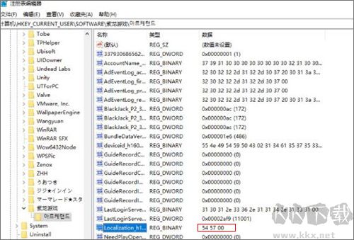 4、然后將localization那條后面的數(shù)字改成54 57 00就可以將游戲改成中文了。