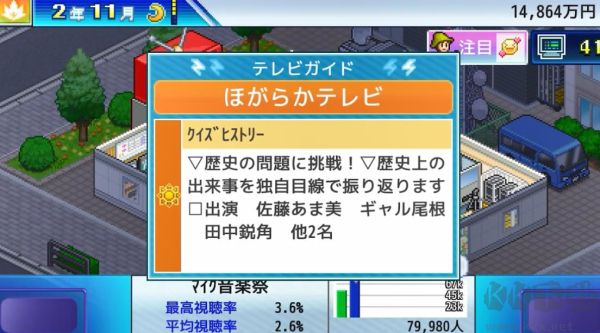開(kāi)羅電視演播室物語(yǔ)最新版是開(kāi)羅旗下的最新作品,玩家將在游戲中扮演電視臺(tái)創(chuàng)始人,我們需要選擇節(jié)目來(lái)我們的電視臺(tái),并且播放給用戶(hù)看,根據(jù)用戶(hù)的需求合理經(jīng)營(yíng)電視臺(tái),最終成為最富有的電視臺(tái),感興趣的伙伴點(diǎn)擊下載體驗(yàn)一下吧!