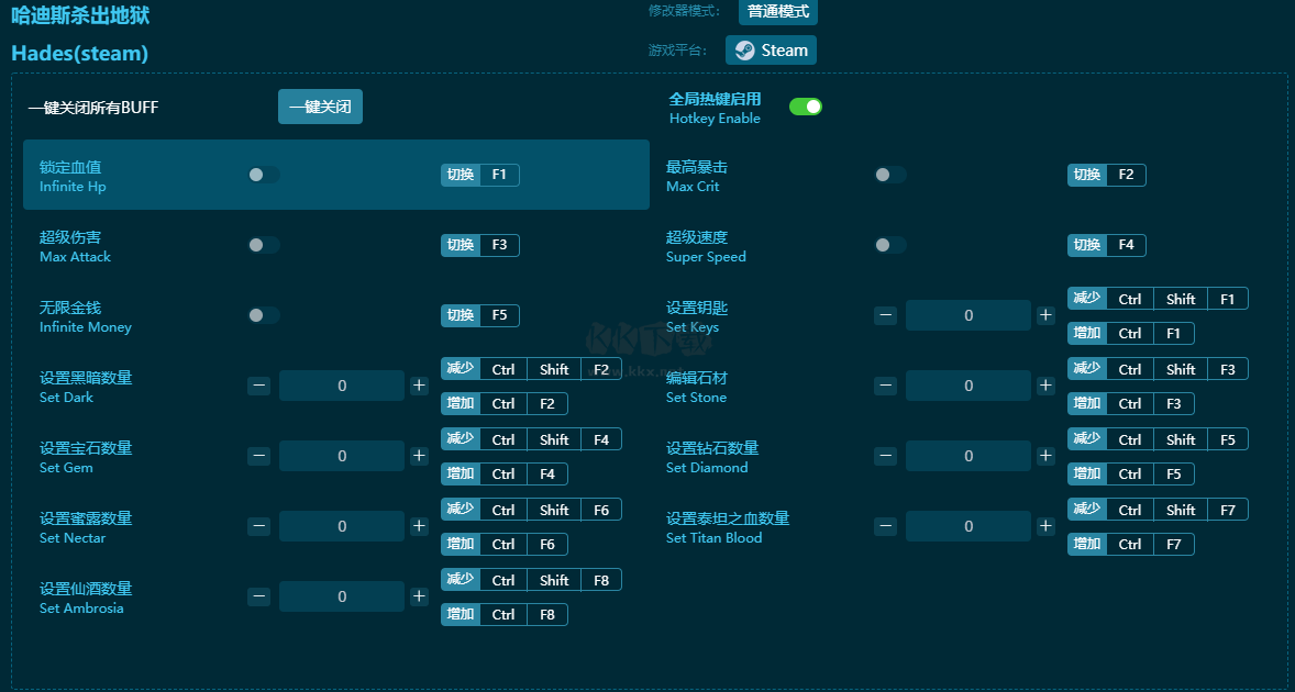 哈迪斯殺出地獄十三項(xiàng)修改器功能