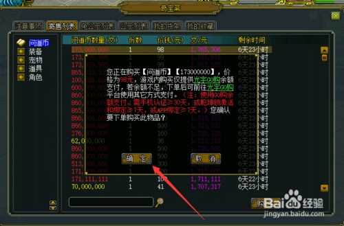 然后點(diǎn)擊寄售列表,自動(dòng)是選擇游戲幣的,然后點(diǎn)擊購(gòu)買