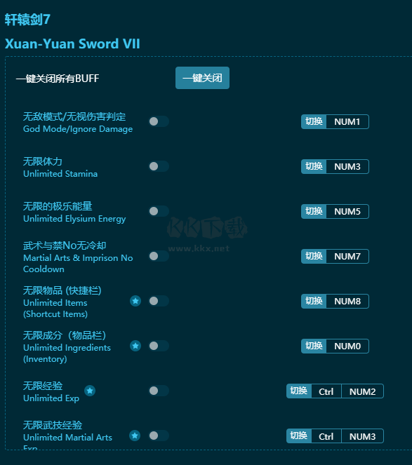 軒轅劍7十八項(xiàng)修改器鍵位功能
